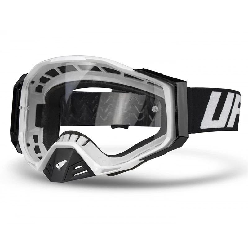 UFO Plast EPSILON, off road goggle from great performance, born from the most advanced technological and stylistic research, designed for the most attentive and demanding riders. Coordinated with all helmets and UFO Plast offroad clothing. Features: Comfortable goggle to wear thanks to the extremely light structure. Ergonomic structure, guarantees a wide field of vision and a wide peripheral and superior vision. Frame perfectly adherent to the face, the mask integrates perfectly with all the most important helmets on the market. The ventilation system promotes uniform air circulation inside the mask by eliminating water vapor, the lens remains dry and clear. Resistant materials designed to offer maximum protection and sharpness throughout the period of use. Three layers of hypoallergenic foam covered in breathable fleece prevent infiltrations and ensure perfect vision in any condition. Equipped with removable nose protection to facilitate cleaning. Easy to adjust elastic with non-slip silicone inserts to keep the position of the mask on the helmet stable. UV400 anti-fog and anti-scratch lenses.