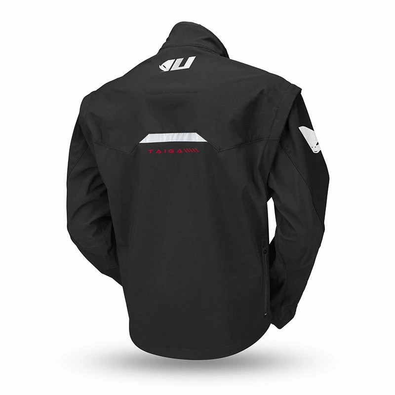 TAIGA is the new UFO Plast enduro jacket designed for enduro specialists. Designed to be an effective protection from wind and rain, it is made with high-performance materials and is designed for the use of camel-back. Features: Enduro jacket in triple layer windproof and rainproof stretch fabric. Waterproof zip closures. Equipped with 4 front pockets. Equipped with large back pocket. Document pocket on the left sleeve. Adjustable cuffs with velcro to block the entry of air while riding. Removable sleeves. Camel-back ready. 2 air scoops in the front of the jacket.