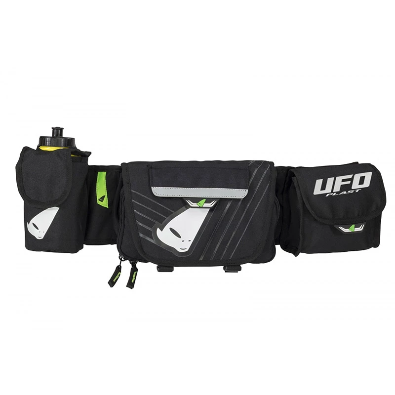 New waist pack with integrated bottle cage, tool storage compartments, and multiple pockets for convenient storage of all your personal effects. Elastic waist belt with Velcro closure. Safety closure with adjustable clip attachment. Removable water bottle compartment (water bottle included). Removable compartment with pocket.Tools storage (tools not included). Document compartment.